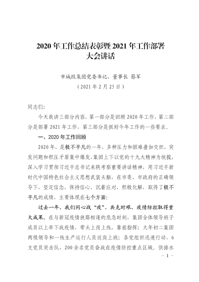 2020年工作總結(jié)表彰暨2021年工作部署大會講話